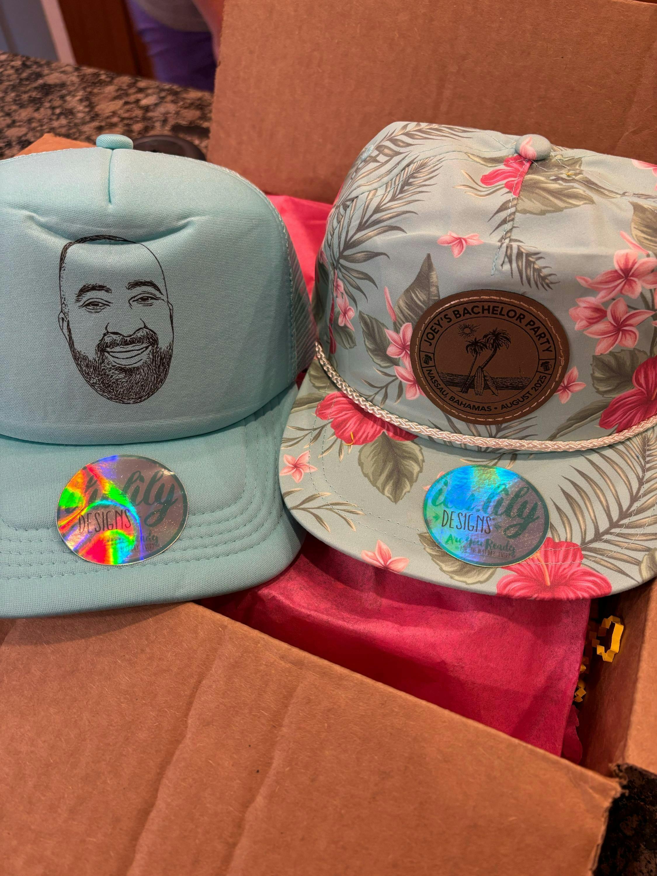 • Custom Bachelor Party Caricature Trucker Hat | Custom Bachelor Party Hats with Photo