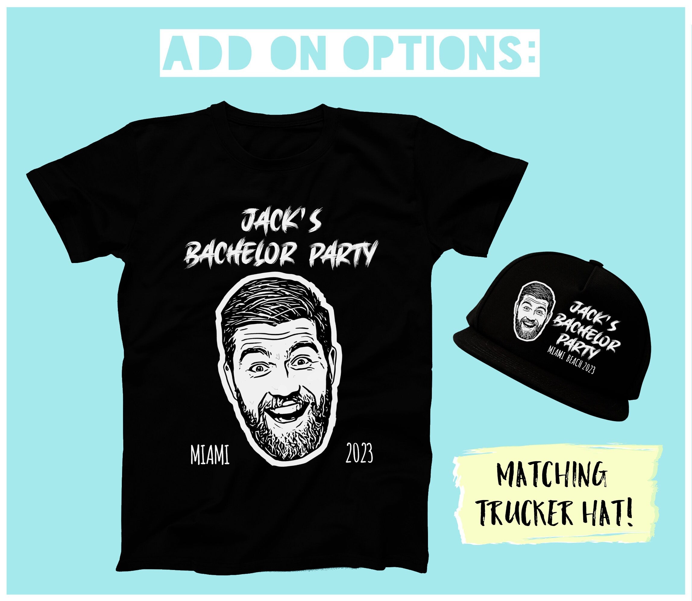 Our custom bachelor party shirt is the perfect way to unite your groomsmen and make your celebration unforgettable. Made from 100% cotton, this black groomsmen t-shirt offers comfort and style that lasts through beach bachelor shirts, pool parties, or any fun bachelor party apparel event. Featuring personalized party shirt options, each custom groomsmen tee is designed to showcase your group with unique wording and graphics, making your bachelor party group shirts stand out in photos and memories.
