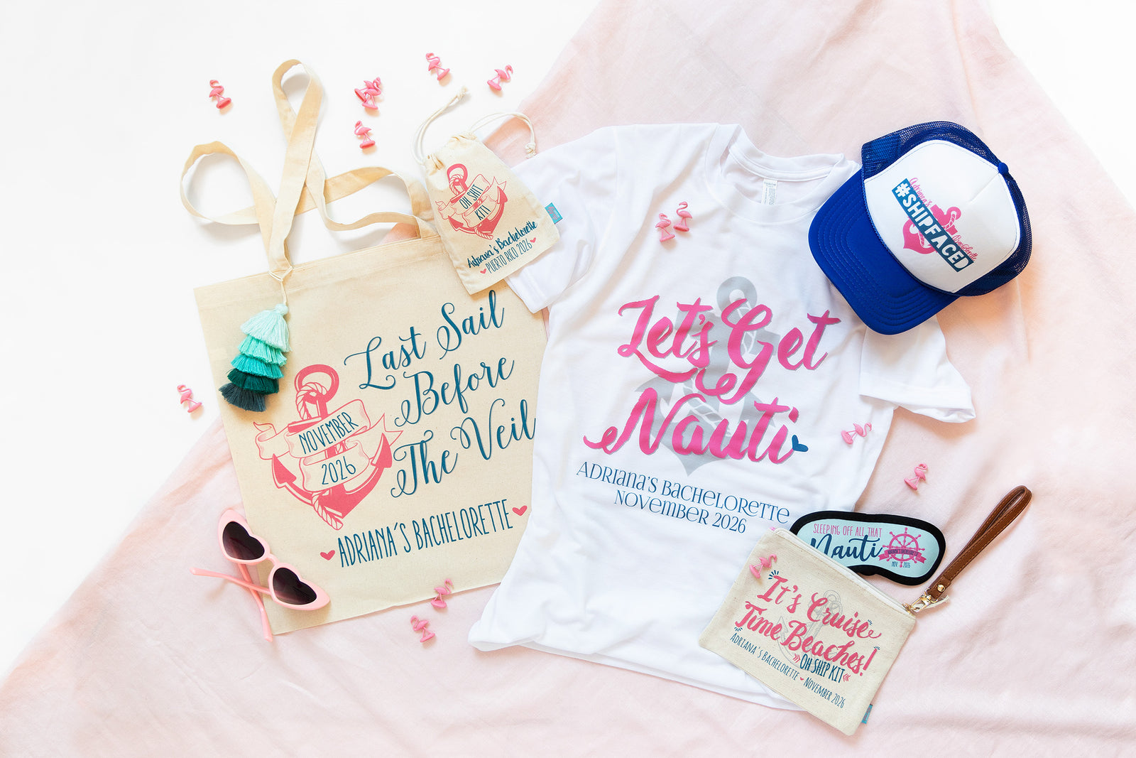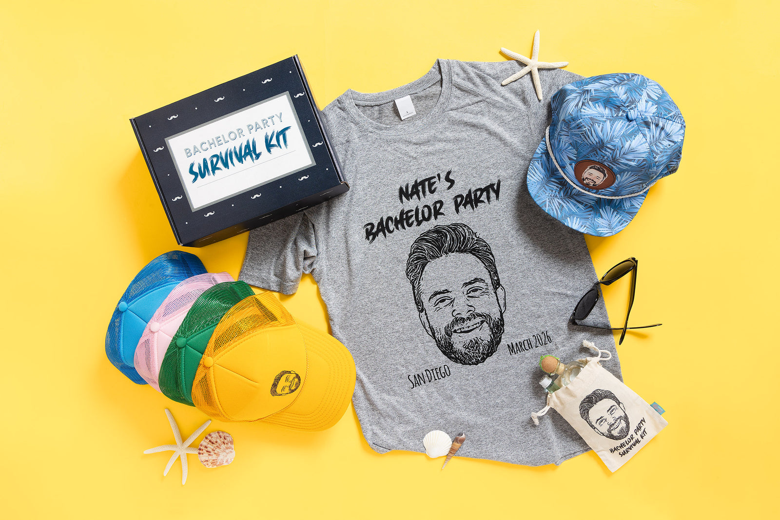 With themes ranging from Vegas to Charleston and beachy to boozy, we make the most of an aesthetic with apparel, hats, bags, and gifts they’ll love.