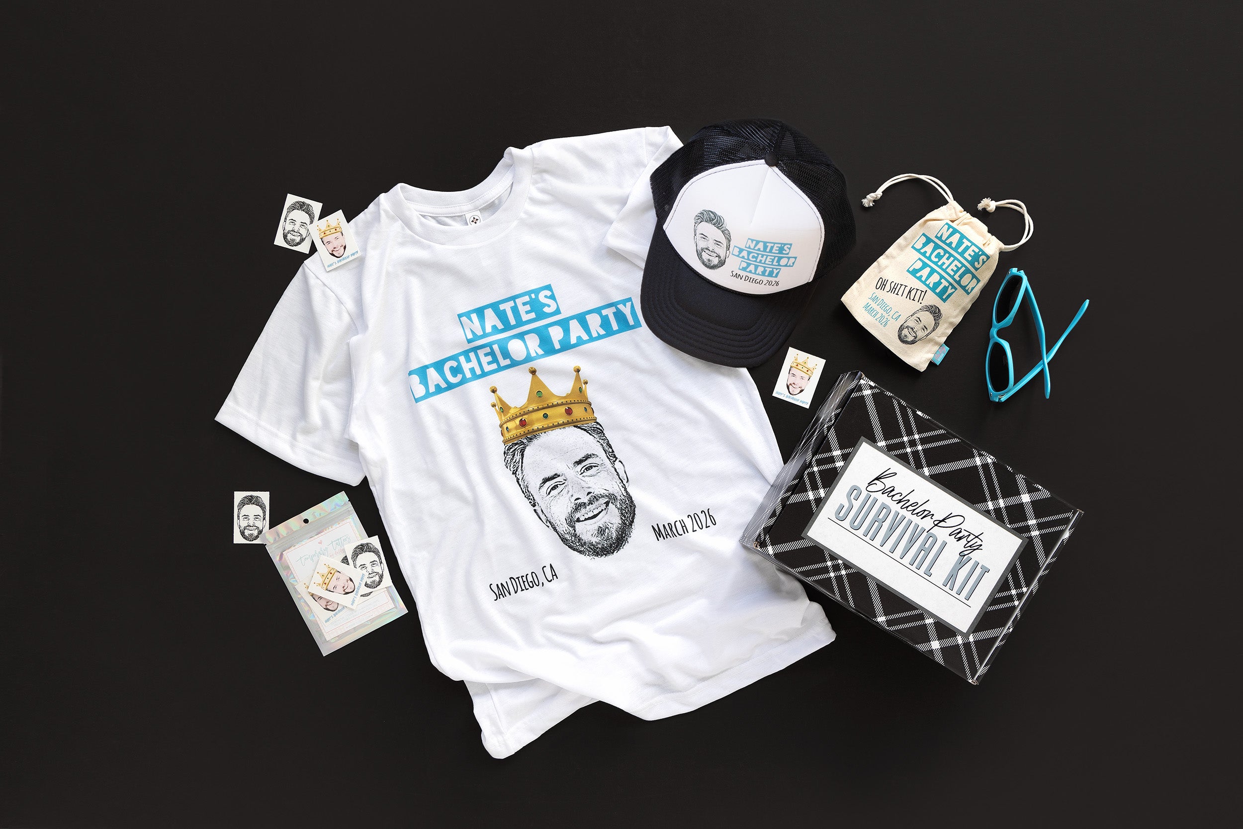 Whether your brides and grooms are looking for the perfect bachelor and bachelorette party favors, on-theme shirts, hats, and gift bags, or life-giving essentials when the squad parties hard, we make it easy for you to provide iconic designs for party modes of all types.