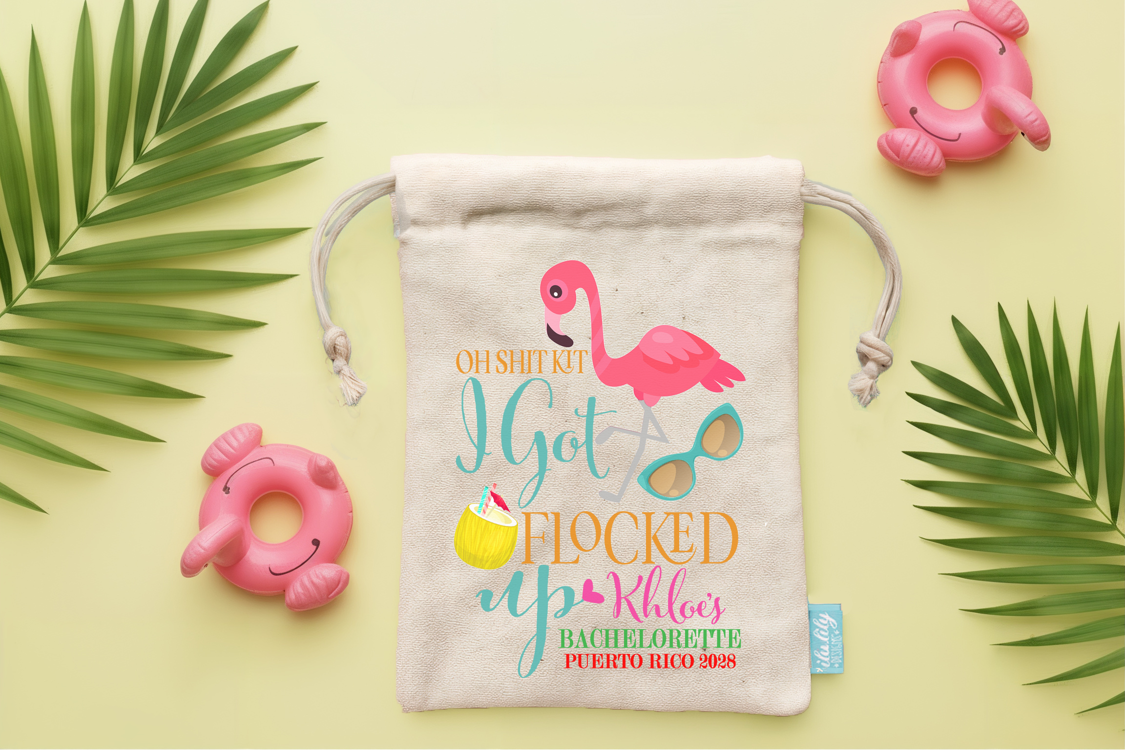 PRODUCT INFOLet's be honest SHIT HAPPENS, but don't let it happen to you + your girls on your bachelorette! Add an instant shot of excitement, fun and glam to your bachelorette party with our fab favor bags. Perfect to hold nail polish, lipstick or other little goodies in to celebrate your big bash! They’re especially perfect as hangover kits so fill them with aspirins, alka-seltzer and mints in for the morning after the big bash. Your girls will definitely appreciate the love!Need your bags filled? We do that too! Just choose any of the above items and we'll do all the work so that your bags will arrive ready to gift!STYLE DETAIL• Our mini favor bags measure 5” x 7” and are made out of 100% natural cotton canvas with a cotton drawstring for secure closure. They are durable with reinforced stitching within for extra strength.• Wording can be adjusted to your desire along with details and colors.